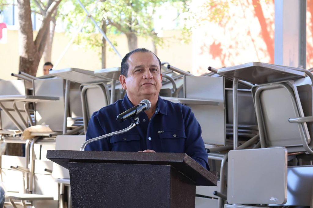 El Secretario General de la SECCIÓN 53 Prof. Ricardo Madrid Uriarte, participó en la entrega de mobiliario escolar en la escuela secundaria «Lic. Abelardo Medina», invitado por el Dr. José Paz López Elenes, Presidente Municipal de Badiraguato.