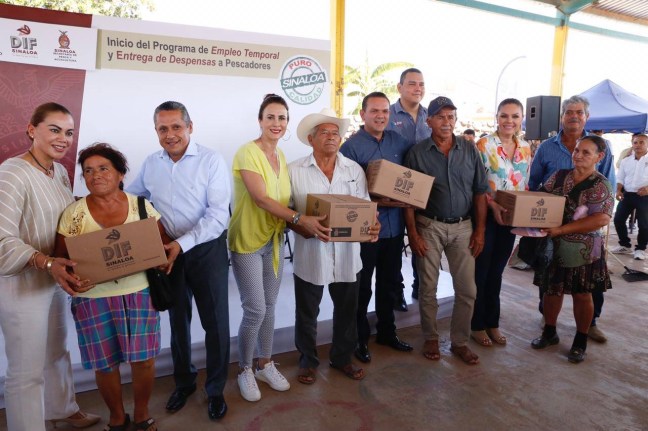 Ante las familias de los pescadores Rosy Fuentes, expresó que este año se entregarán 76 mil 500 despensas en 240 campos pesqueros, distribuidas en tres meses, beneficiando a 26 mil 500 familias sinaloenses.