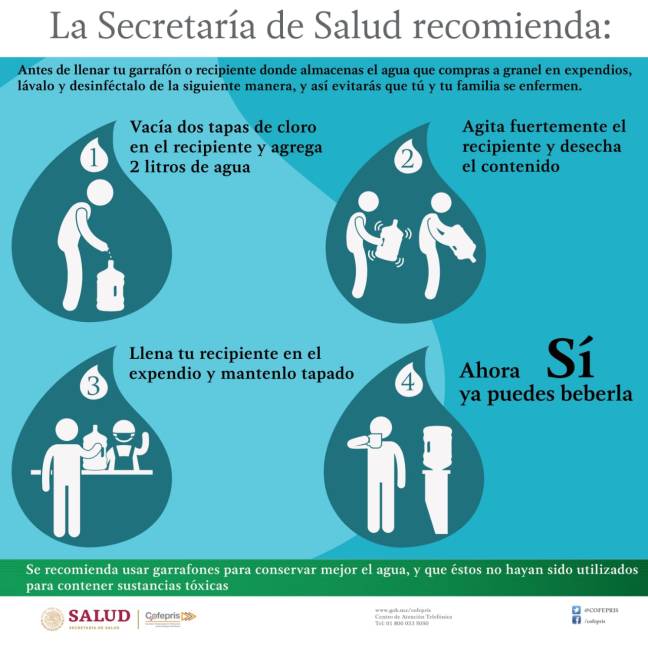 “Es recomendable procurar estar al pendiente de la forma en que realizan el lavado del envase y de preferencia llevarlos al sitio en donde el proceso sea visible, las instalaciones y la indumentaria del personal estén limpias, y que el llenado de garrafón se realice en una área cerrada o aislada del resto del establecimiento”, comentó.