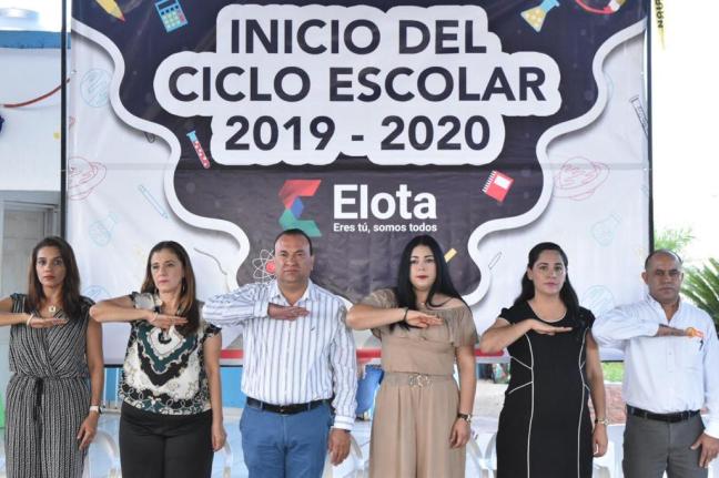 Arroyitos, Elota, Sinaloa.- En un evento realizado en la escuela secundaria profesora Rafael Sarabia Aguiluz de la comunidad de Arroyitos, autoridades municipales, encabezadas por el alcalde Geovani Escobar Manjarrez y representantes del sector educativo pusieron en marcha el ciclo escolar 2019-2020.