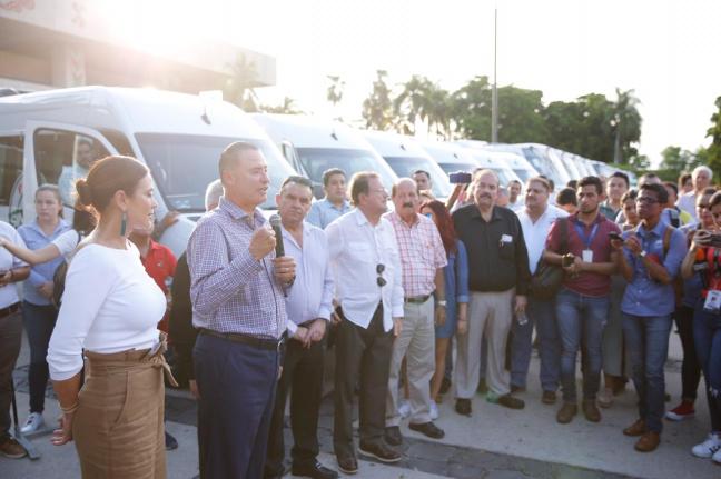 Culiacán, Sinaloa. El gobernador Quirino Ordaz Coppel, a través del “Programa de Renovación de Unidades de Transporte Público Urbano”, entregó 50 unidades nuevas que vendrán a sumarse a las 200 que a lo largo del año ha venido distribuyendo para los municipios Ahome, Guasave, Salvador Alvarado, Culiacán y Mazatlán, con el objetivo de que los usuarios tengan un servicio más digno y seguro.