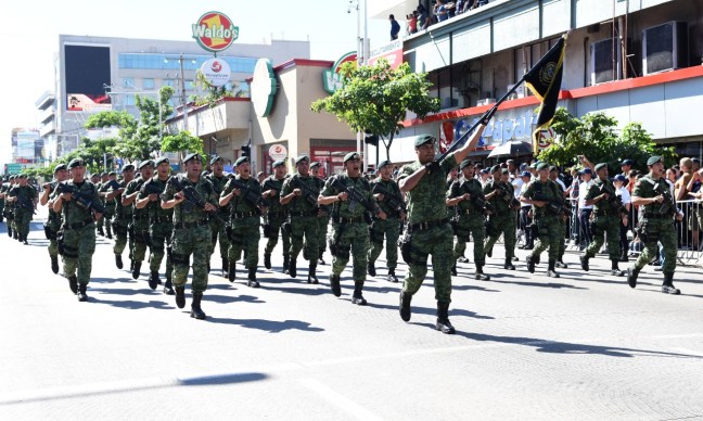 Cientos de culiacanenses presenciaron el recorrido de los diferentes contingentes del ejército militar, quienes daban muestra de su equipamiento táctico, armamento y vehículos motorizados, mientras transitaban por la avenida Álvaro Obregón.