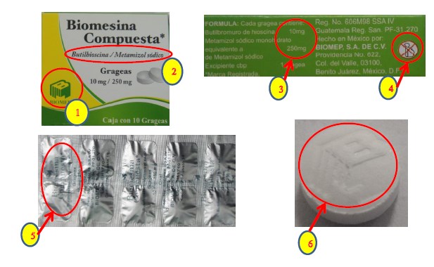 Sobre el citado producto informó que el medicamento Biomesina Compuesta (Butilhioscina/Metamizol sódico) se utiliza como analgésico, antipirético, antiespasmódico, y es recomendado para aliviar cólicos renales y hepáticos, estados febriles, trabajo de parto y dolores post operatorios. El producto original cuenta con Registro Sanitario 606M98 SSA IV.