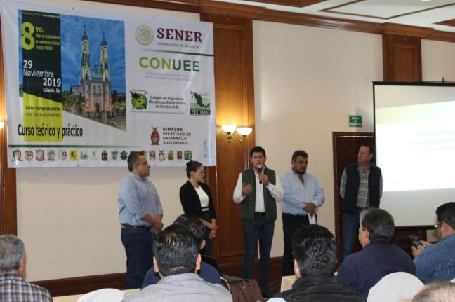 Durante el evento organizado por la Comisión Nacional para el Uso Eficiente de la Energía (CONUEE) y el Colegio de Ingenieros Mecánicos Electricistas de Sinaloa A.C., el secretario de Desarrollo Sustentable indicó que al construir considerando el diseño bioclimático, orientación, asoleamiento y materiales amigables con el medio ambiente se obtienen como resultados edificios más sustentables.