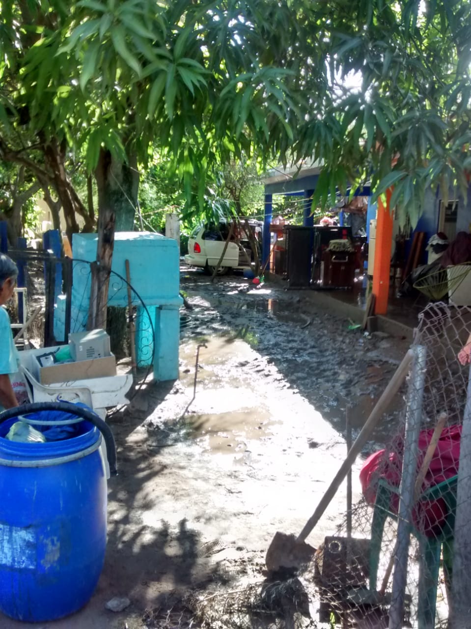 Piaxtla de abajo, casas afectadas por la inundación. Recorrido del Gobermador Quirino Ordaz con personal de Secretaría de Salud y Coepriss.