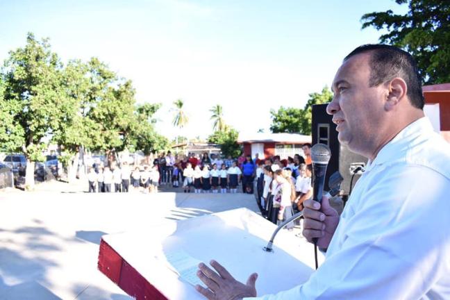 El Carrizo, Elota, Sinaloa. El alcalde Geovani Escobar Manjarrez hizo el compromiso de construir una techumbre metálica en la escuela primaria rural federal Ignacio Allende, en la comunidad de El Carrizo.