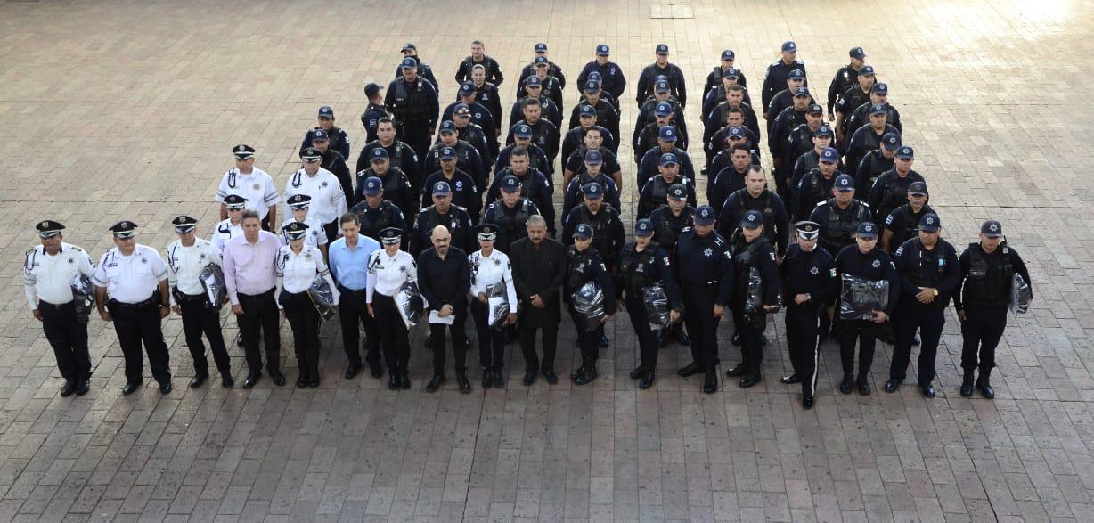 Presidente municipal entrega uniformes a elementos de la SSPyTM para el desempeño de sus funciones