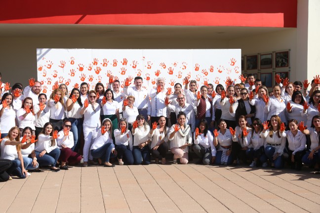 - El personal que integra la dependencia plasmó sus manos en señal de rechazo a la violencia contra las mujeres y niñas