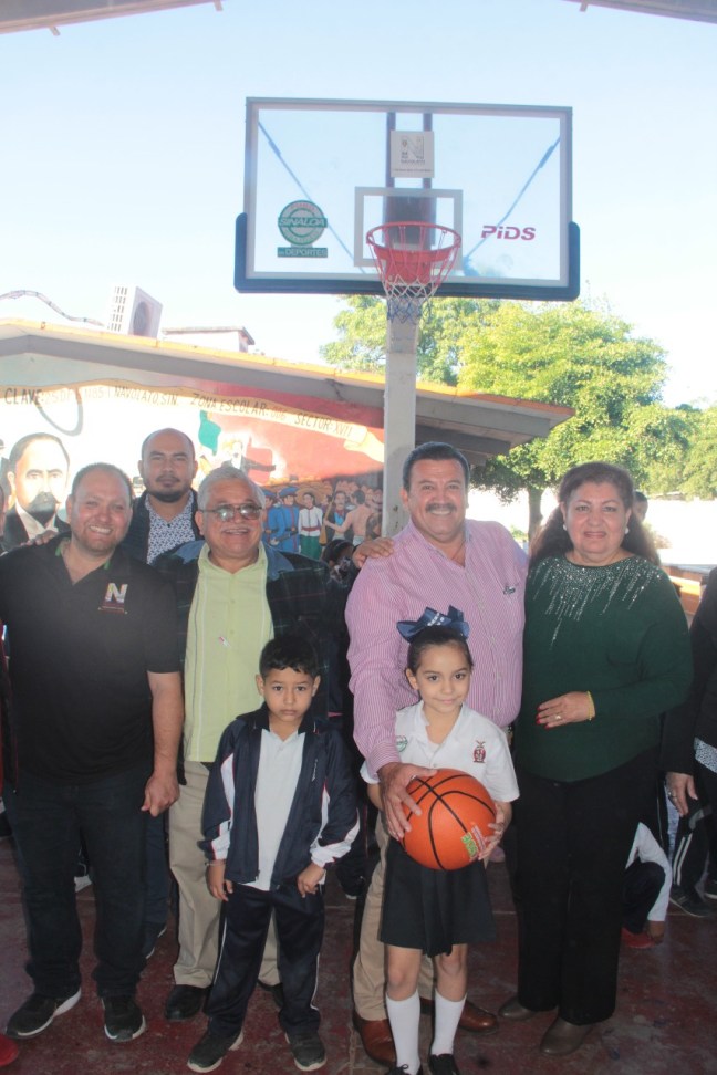 «Este es un gran día para Navolato, porque la grandeza de nuestra sociedad se encuentra en los niños y niñas, es por eso que nos da mucho gusto cuando venimos a las escuelas a traerles algún beneficio, y en este caso en particular, les entregamos los tableros de basquetbol que son muy importantes para la práctica del deporte, y esta actividad sin duda alguna tiene que ver con la formación de la niñez y juventud de nuestro municipio», dio a conocer el mandatario municipal, Eliazar Gutiérrez.