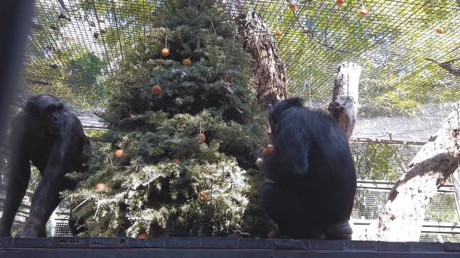 Culiacán, Sin. Gracias al programa de reciclaje de árboles navideños promovido por el Zoológico de Culiacán y la magnífica respuesta de las familias sinaloenses, los chimpancés “Pepe”, “Coco” y “Mara” y otros ejemplares, han recibido un extraordinario regalo a través de enriquecimientos ambientales usando dichos árboles.