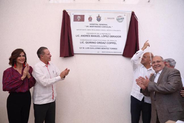 Mazatlán, Sinaloa. Como un día histórico para Mazatlán calificó el gobernador Quirino Ordaz Coppel la inauguración del nuevo Hospital General “Dr. Martiniano Carvajal”, que vendrá a otorgar el servicio a 300 mil sinaloenses del sur del estado que carecen de seguridad social, y que fue construido enteramente con recursos públicos, sin contratar deuda ni tampoco mediante esquemas de asociaciones público privada.