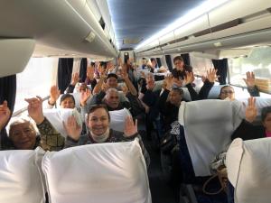 Sale el primer grupo de personas del programa «Uniendo corazones al son de la banda» del PRI.