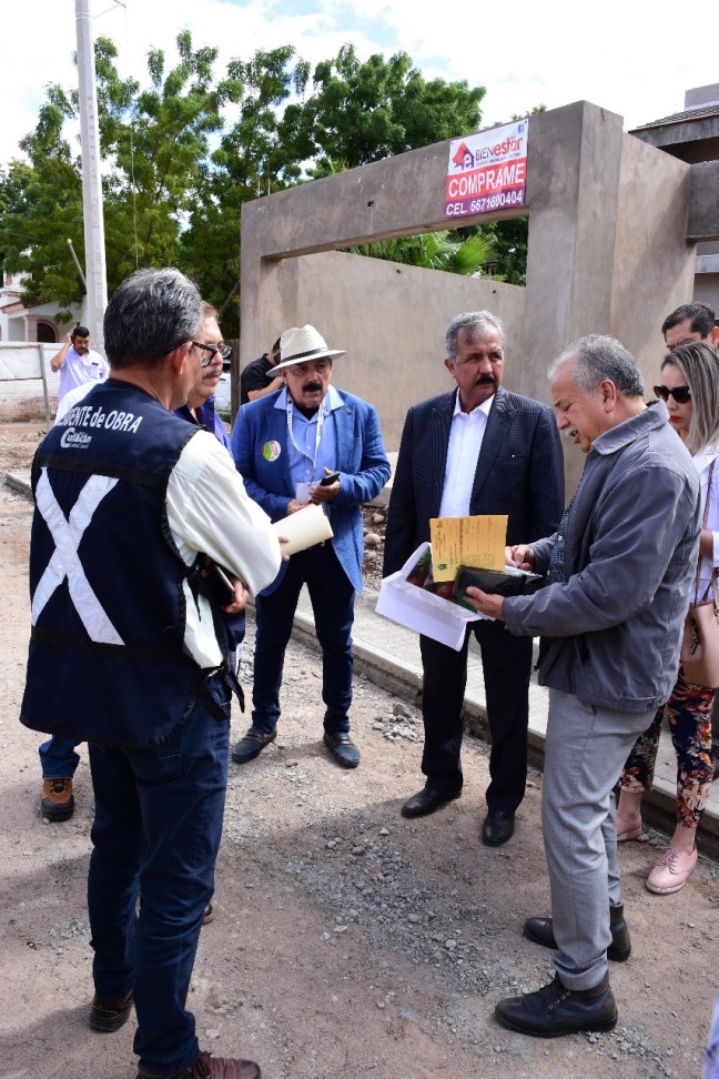 Culiacán, Sin. Las obras de pavimentación que realiza el Gobierno de Culiacán en Aguaruto continúan avanzando, y este día fueron supervisadas por el alcalde Lic. Jesús Estrada Ferreiro, quien acudió a la sindicatura para verificar dichos trabajos.