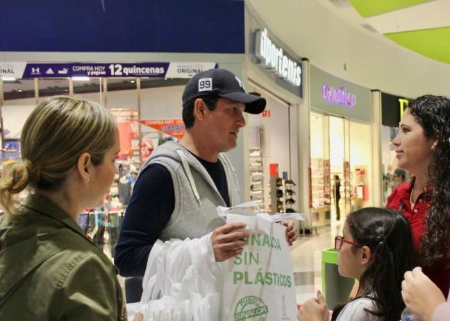 El secretario de Desarrollo Sustentable invitó a las familias que realizaban sus compras en plaza Sendero a adoptar desde sus hogares hábitos amigables con el planeta y a llevar las bolsas reutilizables #SinaloaSinPlásticos cada vez que necesiten trasladar mercancías.