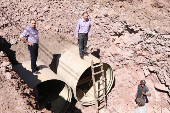 Por último, el gobernador del estado se dirigió al otro extremo de la ciudad, al sector sur, para supervisar la construcción del colector Adolfo López Mateos, el más largo, de 4.32 kilómetros de longitud, y que atraviesa varias colonias populares, desde la avenida Manuel J. Clouthier hasta La Costerita.