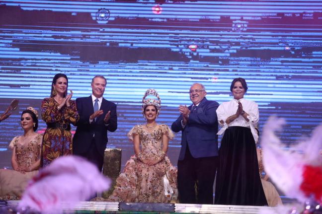 Mazatlán, Sinaloa. En un marco de fiesta, alegría e identificación con nuestras raíces y cultura, el gobernador Quirino Ordaz Coppel, acompañado por su esposa Rosy Fuentes de Ordaz y por el presidente municipal, Luis Guillermo Benítez Torres y su esposa, Gabriela Peña Chico de Benítez, coronó a Su Majestad Libia II, Reina del Carnaval de Mazatlán, que este año tiene el lema «Somos América».