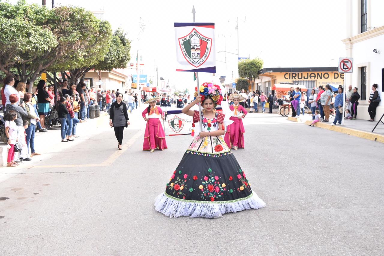 Con desfile, celebran Día de la Bandera en Elota