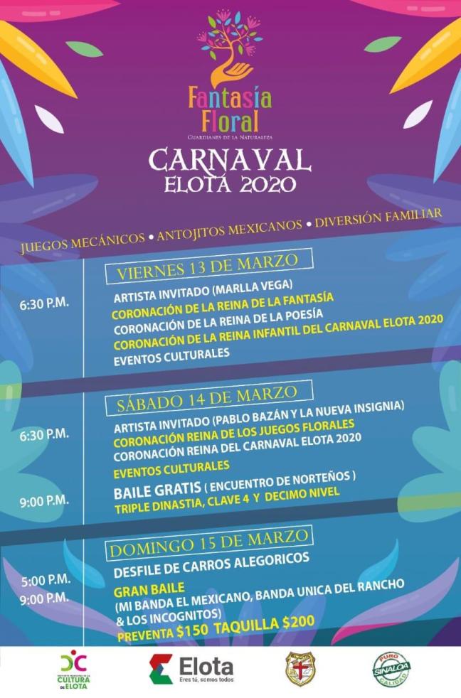 La Cruz, Elota, Sinaloa. La máxima fiesta del pueblo, el Carnaval Elota 2020, que este año lleva por lema “Fantasía Floral: Guardianes de la Naturaleza”, se celebrará este 13, 14 y 15 de marzo.
