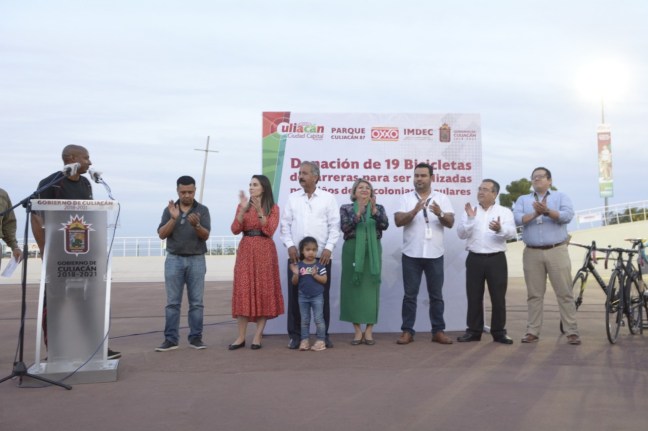 Culiacán, Sin. Un total de 19 bicicletas de carreras fueron donadas al Gobierno de Culiacán por la cadena comercial OXXO, las cuales fueron recibidas por el alcalde Lic. Jesús Estrada Ferreiro; estas serán para niñas y niños de escasos recursos que residen en colonias populares y que podrán hacer uso de ellas sin costo alguno en el velódromo del Parque Culiacán 87.