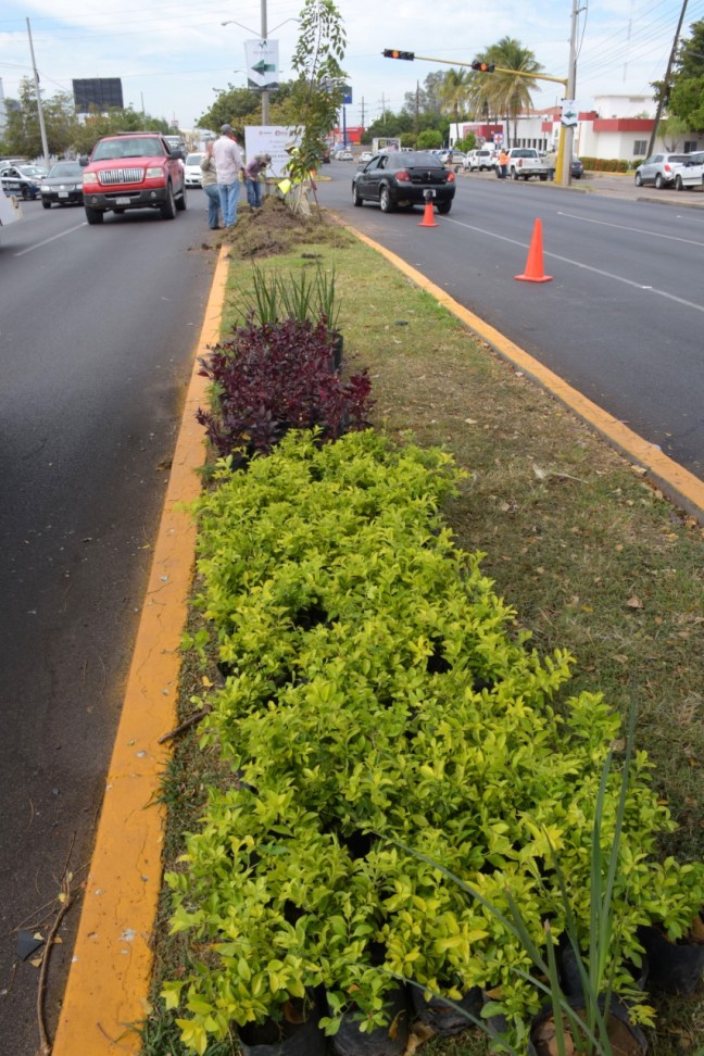 Culiacán, Sin. Los principales camellones de la ciudad, cambiarán su rostro con los nuevos jardines que están siendo instalados por el Gobierno de Culiacán, esto mediante el sembrado de plantas y flores de ornato que realiza el personal de la Subgerencia de Obras y Servicios Públicos y Mantenimiento de Infraestructura por instrucción del alcalde Lic. Jesús Estrada Ferreiro.