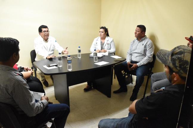 El secretario de la Comuna, Víctor Manuel Cisneros Martínez, el director del Hospital General La Cruz, José Vidal Avendaño López, y la coordinadora de Salud Municipal, Rosa Isela Manjarrez Murillo, se reunieron con los síndicos municipales de El Espinal, Zoquititán, Elota, General Gabriel Leyva Velázquez y General Renato Vega Amador.