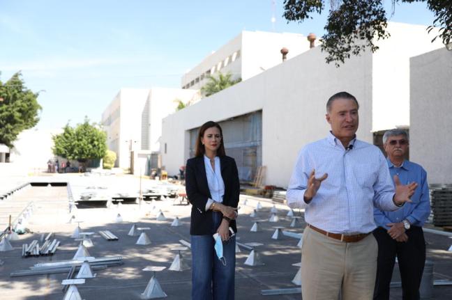 El gobernador Quirino Ordaz Coppel supervisa su edificación y pide a la ciudadanía tomar con seriedad y responsabilidad la emergencia, quedándose en casa.