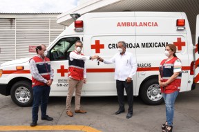 El alcalde Lic. Jesús Estrada Ferreiro, acudió este día a la entrega de una ambulancia para la delegación local de Cruz Roja