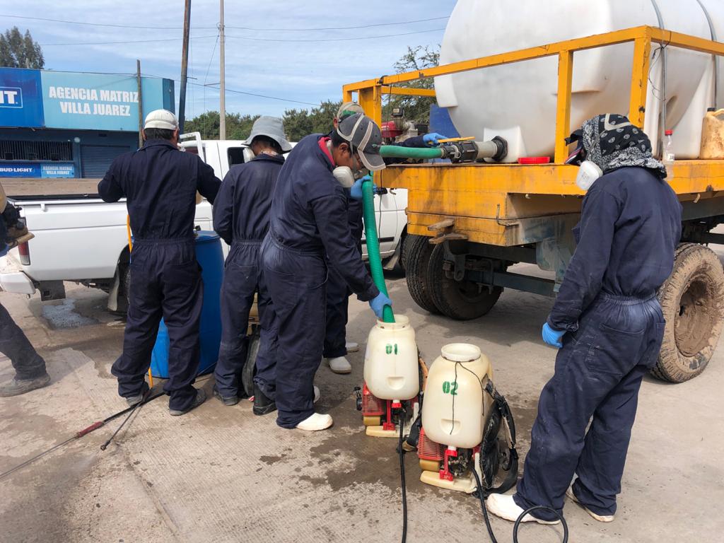 Se suman agricultores a los trabajos del Ayuntamiento de Navolato para desinfectar Villa Juárez