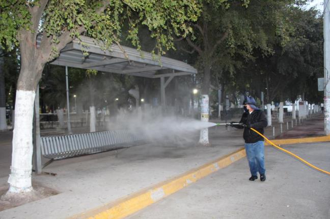 Navolato, Sinaloa. Como una medida de proteger la salud de las familias navolatenses, el presidente municipal Eliazar Gutiérrez Angulo, dio instrucciones para ampliar los trabajos de desinfección, y ahora fue en el Centro de la ciudad, para evitar la propagación y contagio del COVID-19.