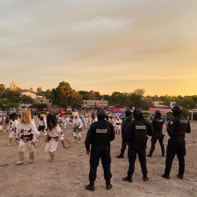 Ahome, Sinaloa. Con vigilancia de la Secretaría de la Defensa Nacional (SEDENA), Secretaría de Marina Armada de México (SEMAR), Guardia Nacional, Policía Estatal Preventiva (PEP), y Policía Municipal, las comunidades pertenecientes a la etnia mayo-yoreme del norte de Sinaloa dieron inicio a las celebraciones del norte de Sinaloa en San Miguel Zapotitlán, Ahome.