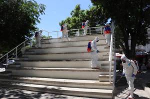 SANITIZA LORENA PÉREZ ESTABLECIMIENTOS Y ESPACIOS PÚBLICOS POR CORONAVIRUS
