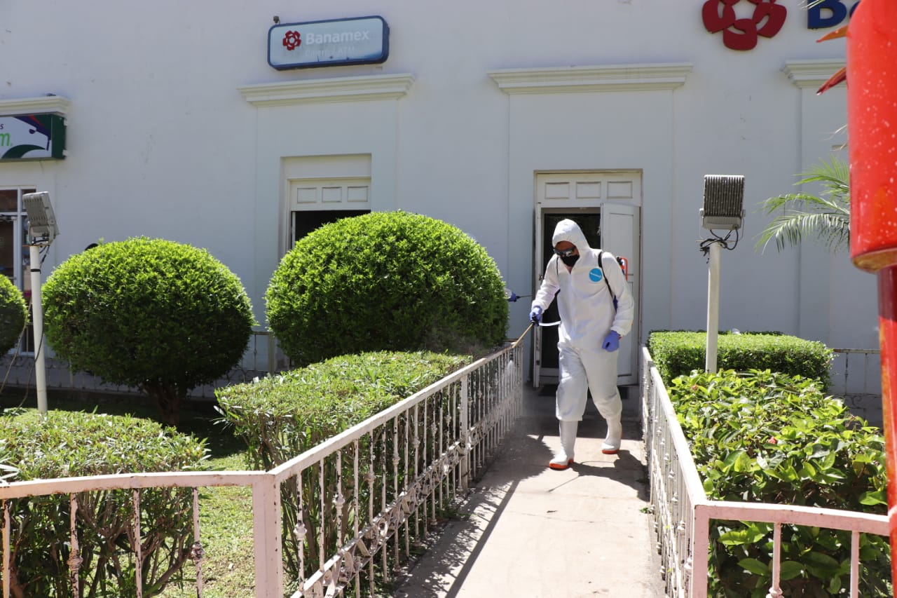 SANITIZA LORENA PÉREZ ESTABLECIMIENTOS Y ESPACIOS PÚBLICOS POR CORONAVIRUS