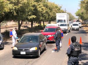 Alcalde Eliazar Gutiérrez recorre los filtros sanitarios, en Navolato