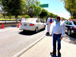 Alcalde Eliazar Gutiérrez recorre los filtros sanitarios, en Navolato