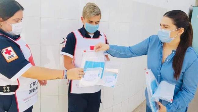 El equipamiento que se continuará entregando en los hospitales, centros de salud y delegaciones de la Cruz Roja, dijo, consiste principalmente en cubrebocas, caretas de protección, sanitas para lavado y secado de manos, jabón antibacterial y gel desinfectante, así como cajas de acrílico para la atención de pacientes.