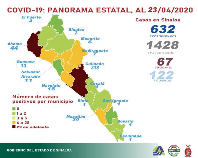 Decesos: 67 (6 Nuevos: 5 Culiacán, 1 Salvador Alvarado)