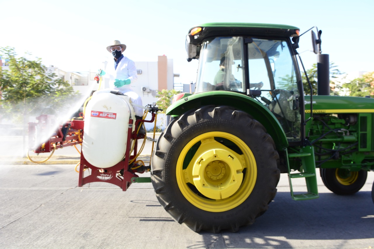 EL Lic. Jesús Estrada Ferreiro, el Gobierno de Culiacán continua con las brigadas de sanitización al exterior de domicilios y comercios en la ciudad