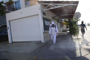 EL Lic. Jesús Estrada Ferreiro, el Gobierno de Culiacán continua con las brigadas de sanitización al exterior de domicilios y comercios en la ciudad
