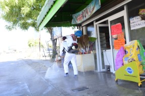 EL Lic. Jesús Estrada Ferreiro, el Gobierno de Culiacán continua con las brigadas de sanitización al exterior de domicilios y comercios en la ciudad