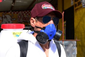 EL Lic. Jesús Estrada Ferreiro, el Gobierno de Culiacán continua con las brigadas de sanitización al exterior de domicilios y comercios en la ciudad