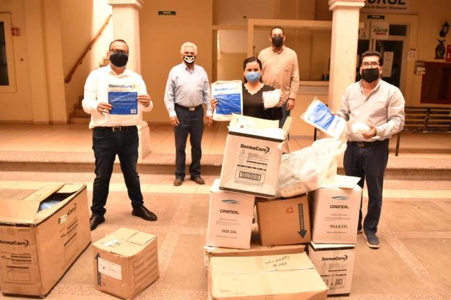 En compañía de regidores y funcionarios de la Comuna, el primer edil dio paquetes de mascarillas N95, trajes tivek, cubrebocas, botas industriales y cubrezapatos, lentes, guantes, gorros, gel antibacterial y galones de cloro.