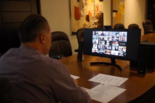 Desde su despacho en Palacio de Gobierno, el mandatario estatal se enlazó a través de una videoconferencia con diversos actores de la sociedad, representantes de sectores productivos, académicos y religiosos, entre ellos Lauro Meléndrez, presidente de Codesin; Gustavo Rojo, de CAADES; Miguel Loaiza Pérez, líder transportista; Carlos Berdegué, empresario hotelero de Mazatlán; los rectores Sylvia Paz Díaz Camacho y Juan Eulogio Guerra Liera; el obispo de la Diócesis de Culiacán, Jonás Guerrero, entre otros más, a quienes les reiteró que no están solos, que su gobierno está con ellos para que Sinaloa salga lo más pronto posible de esta situación generada por la contingencia sanitaria.