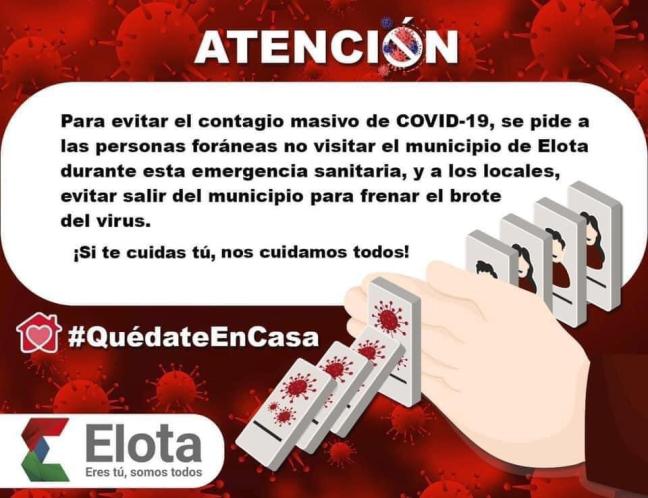 “Le estamos pidiendo a todas las familias elotenses que les comuniquen a sus familiares foráneos, tanto de Culiacán, Mazatlán y otras ciudades, que vienen aquí con nosotros al municipio a visitarnos, como acostumbran por el Día de las Madres, el ir al panteón y hacer una comida en familia, les pido como presidente municipal que se queden en sus casas”, manifestó.