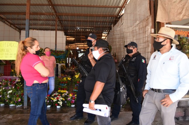 En florerías establecidas de manera formal, se vigila que solo se cuente con servicio a domicilio y la aplicación de las medidas de prevención, mientras que en los panteones municipales públicos y privados; los elementos de seguridad resguardan las entradas ya que el acceso permanece restringido.