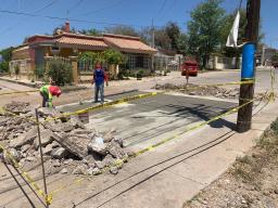 Reponen lozas de concreto dañadas en vialidades de la col. Díaz Ordaz.