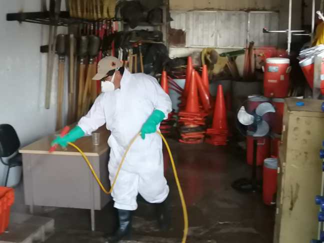 Personal de la Unidad Municipal de Protección Civil realizó estas labores hoy en el Taller Municipal y de igual manera recientemente se sanitizaron bodegas municipales para seguridad de todo el personal que ahí labora.