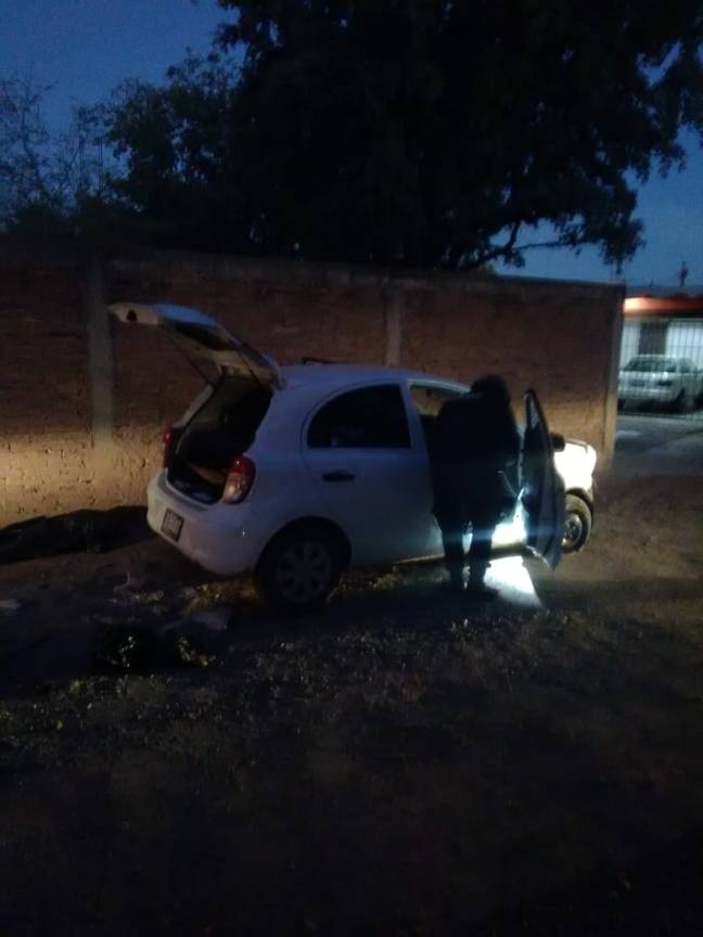 El primer hecho se registró cuando el grupo de motociclistas de la PEP solicitó apoyo a la corporación luego de que observaran un vehículo que trató de evitarlos, esto en el sector de Santa Fe, por lo que acudieron al llamado. Policías estatales iniciaron una persecución, donde se logró ubicar una unidad de la marca Nissan, línea March, la cual fue revisada y, de acuerdo a la información de Plataforma México, contaba con reporte de robo, por este motivo fue asegurada.