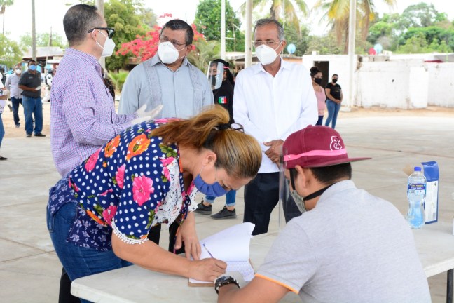 Culiacán, Sin. El alcalde Lic. Jesús Estrada Ferreiro, acompañó al delegado de Programas Federales, José Jaime Montes Salas, a la entrega de apoyos correspondientes a becas del Bienestar y Benito Juárez en la sindicatura de Eldorado y el campo pesquero Las Arenitas.