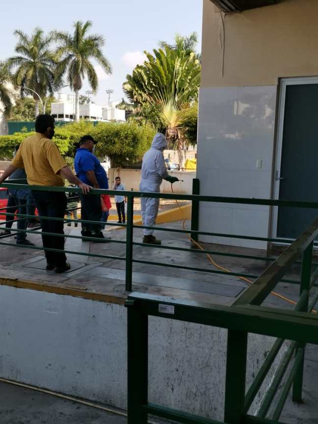 Algunas de las zonas desinfectadas en el edificio fueron el exterior del banco de sangre, de la unidad de patología, en el acceso principal, así como también el área de urgencias, donde generalmente se concentra una mayor cantidad de personas.