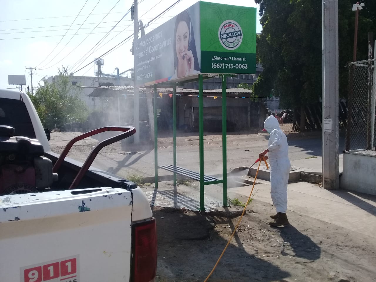 Continúa sanitización en paradas de camiones